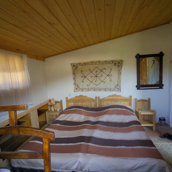 სასტუმრო გაფორმებულია ქართული ტრადიციული ავეჯით და დიასახლისის მიერ შესრულებული ფერწერული ნამუშევრებით, რაც სტუმრებისთვის მყუდრო და თბილ გარემოს ქმნის.