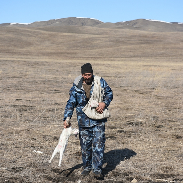 „ეს ბატკნები ერთი საათის წინ დაიბადნენ. ასე ხურჯინით მოგვყავს ხოლმე მინდვრიდან. დედა ცხვარი უმეტესად მინდორში მშობიარობს. სადმე დაწოლილი ცხვარი თუ დაინახეთ, ალბათ ბატკანს აჩენს. ახლა დედები ისევ მინდორში არიან, საღამოს მორეკავს მწყემსი. ბატკნები ჯერ თავისით ვერ მოვიდოდნენ და ასე მოგვყავს“, - გვიამბობს ივანე შამშალაიძე და ხურჯინში ჩასმულ ბატკნებს გვიჩვენებს. ბატკნების გადარჩენა მეცხვარეების მთავარი საზრუნავია, რადგან, მათი თქმით, წელს საძოვრებზე ბალახი არ არის და დედებს რძე თითქმის არ აქვთ.
