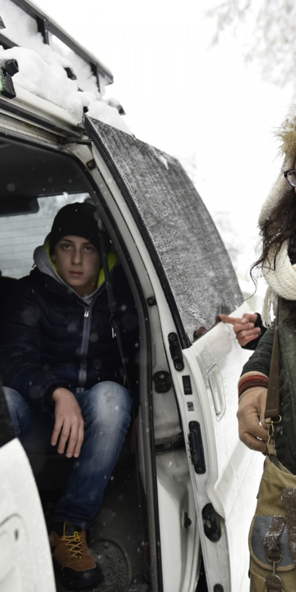 სკოლის ქვემოთ, სადამდეც გზაა გაწმენდილი, თეთრი „დელიკა“ დგას. ეს თემური ბიძიას მანქანაა, რომელიც სკოლას ემსახურება, კორშიდან და მისი მიდამოებიდან მოჰყავს ბავშვები. ახლაც უკვე ყველა მანქანაშია და დირექტორს ელიან. მარინა გიგაურიც, რომელიც კორშაში ცხოვრობს, ამ მანქანას დაყვება. მანამდე ხშირად ფეხითაც დადიოდნენ. მარინას ახლაც ხშირად უწევს დარჩენა, მაგრამ თოვლსა და სიცივეში ფეხით სიარული რთულია. კორშელებს აღარ ვაყოვნებთ, ვემშვიდობებით და სოფლის ექიმთან მივდივართ სასაუბროდ.