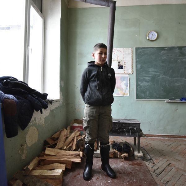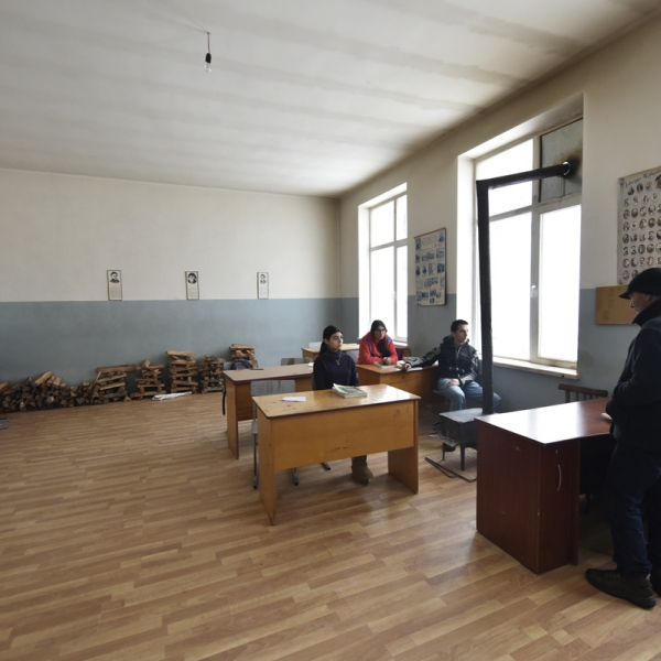 დერეფანში საკმაოდ ცივა, გარედან ვხედავთ, რომ საკლასო ოთახების ფანჯრებიდან კვამლი გამოდის. აქ გაზი დღემდე არ არის და შენობას ისევ შეშით ათბობენ.