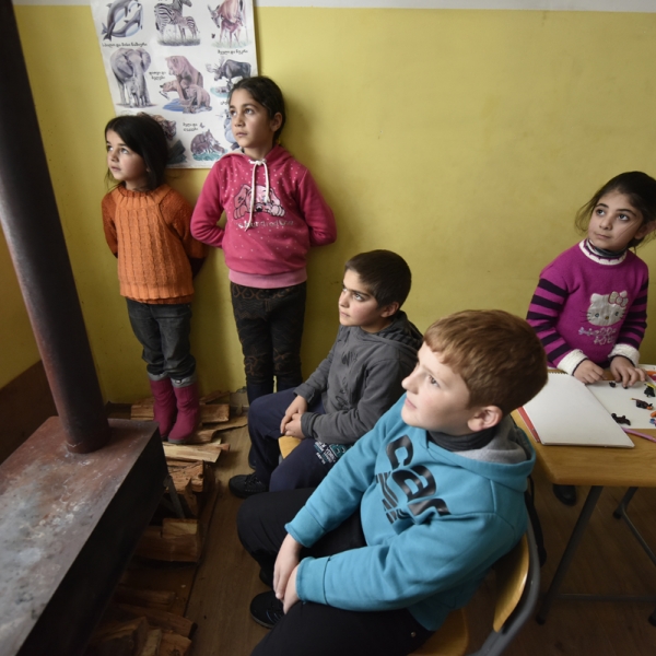 სამასწავლებლოსთან ყველაზე ახლოს მდებარე საკლასო ოთახის კარს ვაღებ და გულს უხარია: ხუთი ისეთი ხევსური ბიჭუნა გვხვდება კლასში, თვალებში ვარსკვლავები რომ უკიაფებთ. მათი ერთადერთი თანაკლასელი გოგონა, ალბათ თოვლის გამო, დღეს არ არის. ასაკისთვის შეუფერებლად და ჩვენდა გასაოცრად, ოთხი ბიჭი საკმაოდ დინჯად ზის მერხთან, მეხუთე კი - ღუმელთან. სხედან და ლელა მასწავლებელს ელიან.