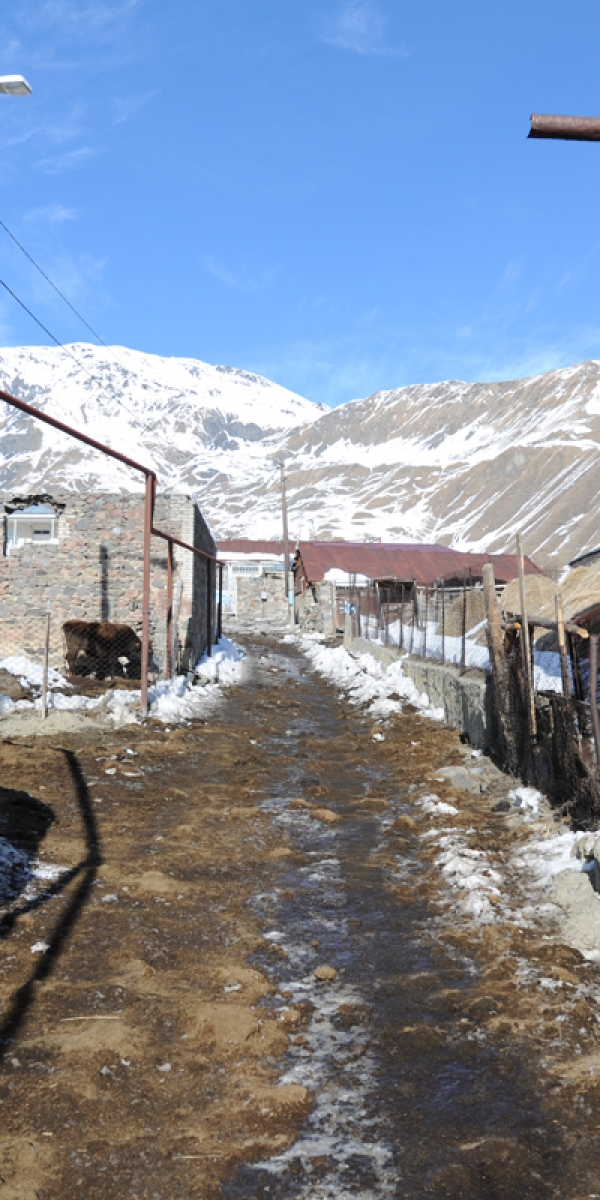 „ახლა მეოთხე შვილს ველი. მე და ჩემი მეუღლე არ ვმუშაობთ. პატარაზე 200 ლარიან დახმარებას ვიღებ, ამას სოციალური დახმარებაც ემატება და ჩემი ოჯახი ამ 480 ლარით ცხოვრობს. საქონელიც გვყავს, ბევრი არა, მაგრამ ბავშვებს რძე-მაწონს ვაჭმევთ. რთულია აქ ყოფნა, რადგან არ არის მაღაზია, ყველაფრისთვის ყაზბეგში მივდივართ. არ არის აფთიაქი, ექიმი, ექთანი. ყაზბეგიდან შორს არ ვართ, მაგრამ ზამთარში მაინც, ეს გზა თუ გაიყინა, რთულია მოძრაობა, მითუმეტეს, თუ მანქანა არ გაქვს“. იას თქმით, რთულია ხევში ცხოვრება, მაგრამ რწმენა აძლიერებთ, სოფელში უმეტესობა მორწმუნეა. მთელი კვირა ელიან შაბათ დღეს, როდესაც წირვა ტარდება.
