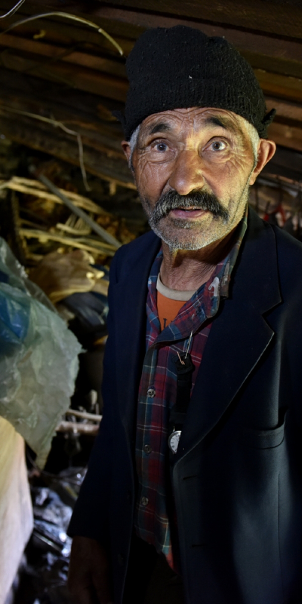„აი, ემ წყალზე როგორ გამოხველით?“, - სალმის შემდეგ ეგრევე ამას გვეკითხება. სულ მარტო ცხოვრობს. არც ოჯახი ჰყავს, არც საქონელი. წინაპრებისგან ორი რამ დარჩენია - სახლი, რომელიც 20 წლის წინ დაენგრა და ჯვრის სალოცავი, რომლის ნანგრევებიც ჯერ კიდევ შემორჩენილა. ამ სალოცავის ერთადერთი პატრონი და მომლოცველიც თავადაა. „როგორც დეკანოზ, აეგრე ვორ სალოცავში დასჩენილიო“, ამბობს.