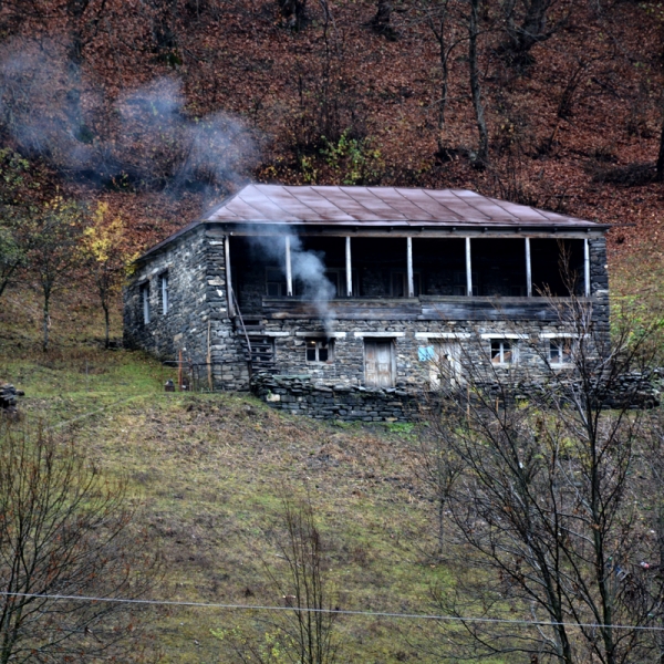 გადავდივართ. ჭიშკარს ვაღებთ და ბილიკს ვადგებით. მთაზე ორსართულიანი, ქვით ნაშენი სახლი დგას.