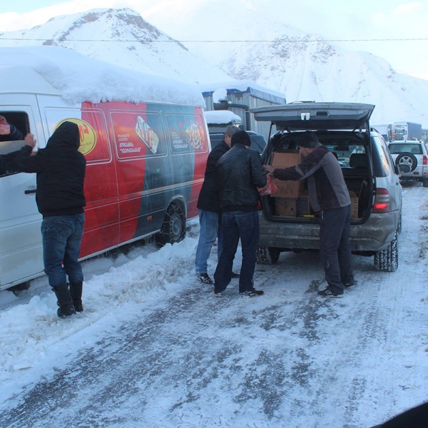 რთული მეტეოროლოგიური პირობების გამო გზაზე ჩარჩენილ მგზავრებს დუშეთის მუნიციპალიტეტის მერმა ზურაბ სეხნიაშვილმა მცხეთა-მთიანეთის გუბერნატორ ლევან ზაუტაშვილთან ერთად, პური და წყალი დაურიგა, თითო მგზავრზე ერთი პური და 0.5 ლიტრი წყალი. რამდენიმე ადგილას ბიო ტუალეტიც დადგეს. ყაზბეგის მერიამ თავისი მუნიციპალიტეტის ტერიტორიაზე გზაში ჩარჩენილი მგზავრებისთვის პურს მოხარშული კვერცხიც დაამატა. ორივე მუნიციპალიტეტის მერიამ ფოტომასალა სოციალურ ქსელში გაავრცელა.