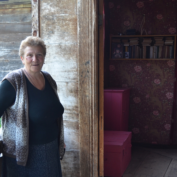 „ახლა ვხვდები, სისულელე დამემართა ეს შპალერი რომ გავაკარი. 120 წლის სახლია ბებო. ჩემი ქმრის ბაბუის, ფილიპეს და მისი ძმების: ვალოდია და ილია სოხაძეების გაკეთებული და აშენებულია ამ სოფელში თითქმის ყველა ხის სახლი. რაჭული ოდებია ეგენი“ - გვეუბნება ნათელა ჭოხონელიძე და ოთახებში გაკრულ ყვავილებიან შპალერს გვაჩვენებს.