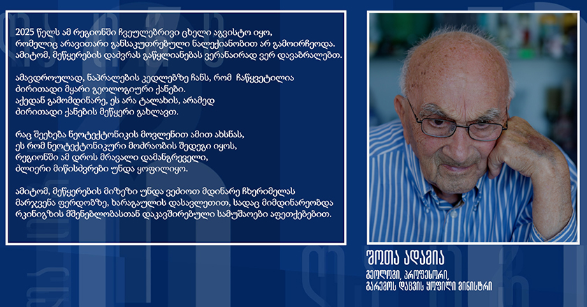„2025 წელს ამ რეგიონში ჩვეულებრივი ცხელი აგვისტო იყო, რომელიც არავითარი განსაკუთრებული ნალექიანობით არ გამოირჩეოდა. ამიტომ, მეწყერების დაძვრას გაწყლიანებას ვერანაირად ვერ დავაბრალებთ.