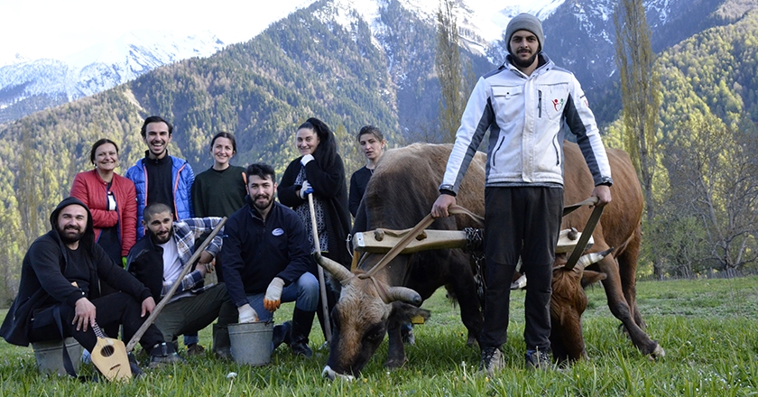 უკვე მოასწრეს 72 წლის ვალიდა აფრასიძის დახმარებაც სოფელ ეცერში. მასპინძელი აშკარად არ ელოდა იმდენ სტუმარს, ადრე დილით სათემოს წევრი ახალგაზრდები ხარებით, გუთნითა და თოხებით შეიარაღებულები რომ დაადგნენ. მთელი დღე იმუშავეს. ხარებს რუსლანი მიუძღოდა, გუთნის ჭერაში დათო და თემური ენაცვლებოდნენ ერთმანეთს. ნინო, ლალი, თამარი, რაშიბო და თამთა თან მიწას აფხვიერებდნენ, თან კარტოფილსა და ლობიოს თესავდნენ, ზაური ბოსტანს ეკალ-ბარდისგან ასუფთავებდა, ყველა ერთად კი მღეროდა - ეცერის ქვედა უბნიდან, რომელიც ხალხისგან თითქმის სრულადაა დაცლილი, მთელი დღე სვანური და ქართული სიმღერები ისმოდა.