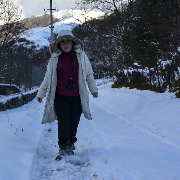 ფეხით მივდივართ კამერებით. არასაიდან ჩქამი... ბევრ სახლთან თოვლიან გზაზე ნაფეხურებიც არ მიდის...