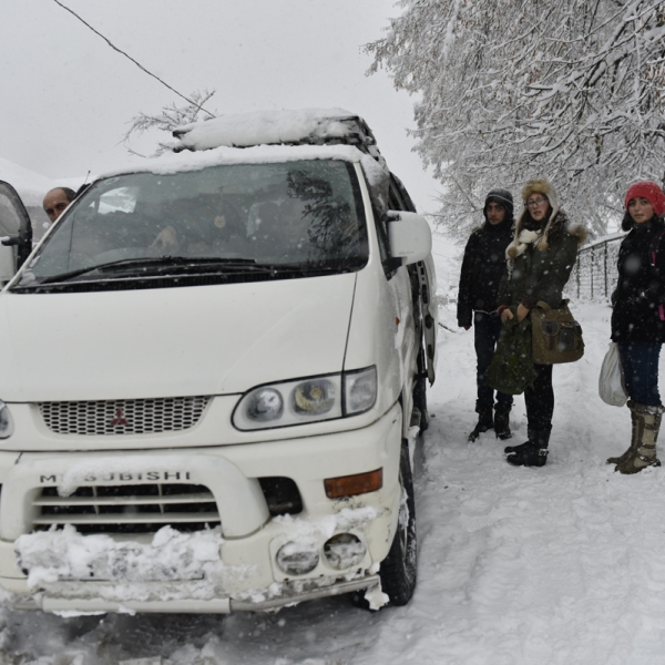 სკოლის ქვემოთ, სადამდეც გზაა გაწმენდილი, თეთრი „დელიკა“ დგას. ეს თემური ბიძიას მანქანაა, რომელიც სკოლას ემსახურება, კორშიდან და მისი მიდამოებიდან მოჰყავს ბავშვები. ახლაც უკვე ყველა მანქანაშია და დირექტორს ელიან. მარინა გიგაურიც, რომელიც კორშაში ცხოვრობს, ამ მანქანას დაყვება. მანამდე ხშირად ფეხითაც დადიოდნენ. მარინას ახლაც ხშირად უწევს დარჩენა, მაგრამ თოვლსა და სიცივეში ფეხით სიარული რთულია. კორშელებს აღარ ვაყოვნებთ, ვემშვიდობებით და სოფლის ექიმთან მივდივართ სასაუბროდ.