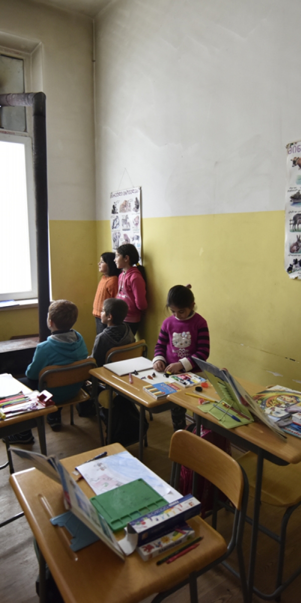 დერეფანში საკმაოდ ცივა, გარედან ვხედავთ, რომ საკლასო ოთახების ფანჯრებიდან კვამლი გამოდის. აქ გაზი დღემდე არ არის და შენობას ისევ შეშით ათბობენ.