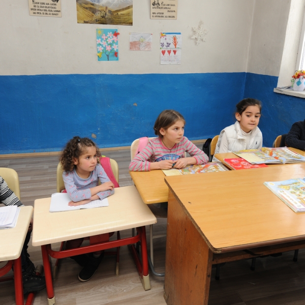 პირველი და მეორეკლასელები ერთად, კლას-კომპლექტად მეცადინეობენ. ამიტომ ყანობის სკოლის ყველა მოსწავლე ერთ საკლასო ოთახში დაგვხვდა. სანამ სკოლის ძირითადი მასწავლებელი ფიქრია ჩაბაიძე დეკრეტშია, ბავშვებს ორი მასწავლებელი ჰყავთ - ნათია ყარაულაშვილი და ნანა ნოზაძე.