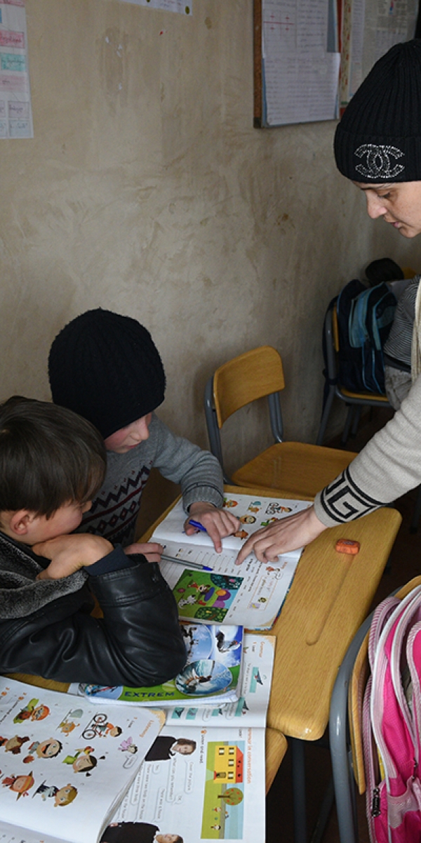 რამდენიმე კვადრატული მეტრის ფართის ოთახებში ზუსტად მოსწავლეთა რაოდენობაზე გათვლილი პატარა მაგიდები და სკამები დგას, კედლებზე კი საბჭოთა პერიოდიდან შემორჩენილი დაფებია მიმაგრებული. კიდევ ერთი სასწავლო ინვენტარი – ხის, ძველი საანგარიშო დაფაა.