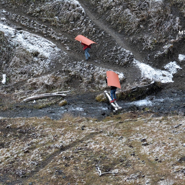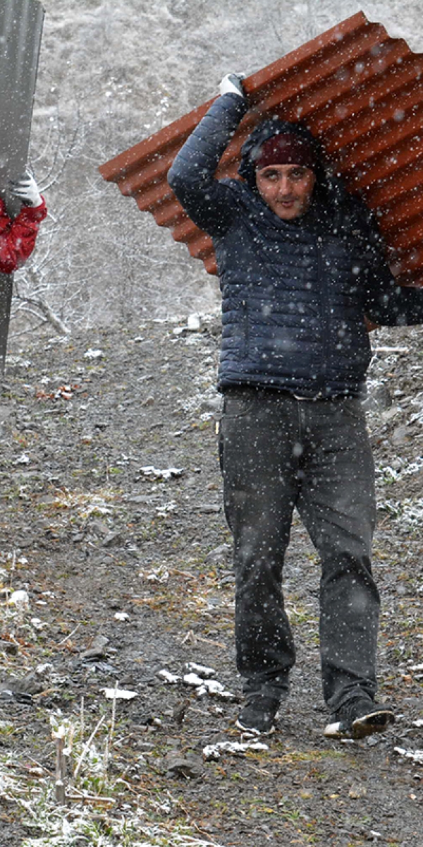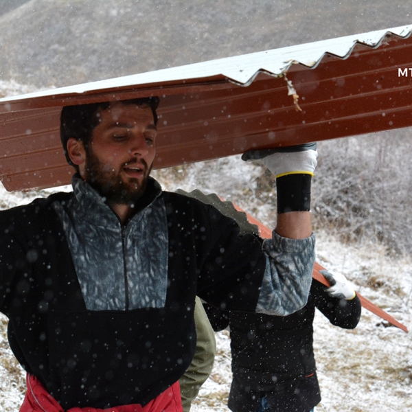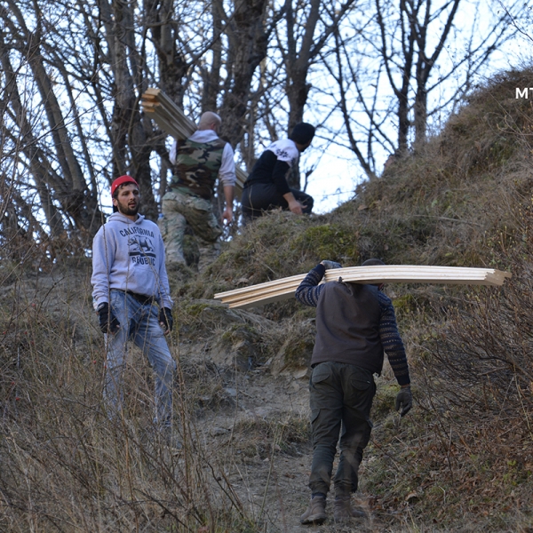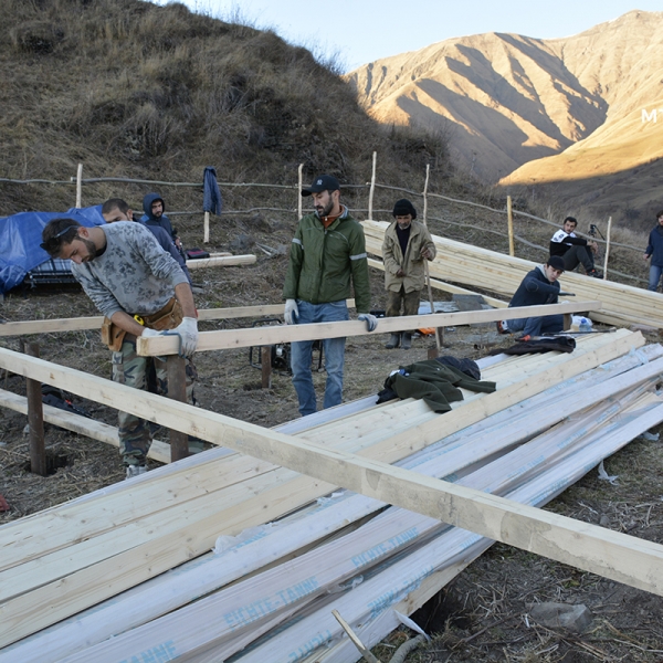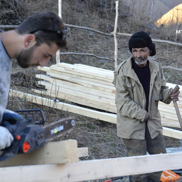 15 კვმ ხის სახლის მშენებლობა კომპანიას „ხის კოტეჯები“ შევუკვეთეთ. თბილისიდან ბარისახომდე სამშენებლო მასალების ტრანსპორტირება დუშეთის მერიამ უზრუნველყო, ბარისახოდან ზეისტეჩომდე კი სასაზღვრო პოლიციამ, ვერტმფრენით. მიხა პაპას მიწურამდე მასალების ატანის და მშენებლობის პროცესში ახალგაზრდები დაგვეხმარნენ.