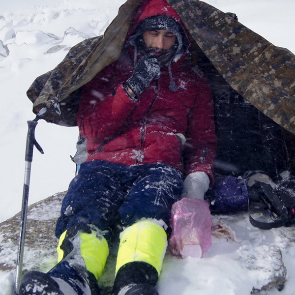 ქარი გასვლისას ხელთათმანს მტაცებს და წამებში აქრობს თოვლის ფარდაში. ხელზე წინდებს ვიცვამ და გზას ვაგრძელებთ. არაფერი ჩანს, ძლიერი ქარია და ნისლი. წინ ვერ ვიყურებით, თოვლი სახეში გვეყრება. ქარის საპირისპიროდ ნელი ტემპით მივიწევთ, მხოლოდ ფეხებს ვხედავთ და ისიც თოვლში ჩაფლულს. შაორის ციხის მიმართულებით მივდივართ. უფრო სწორედ, იმედი გვაქვს, რომ იმ მიმართულებით მივდივართ. მთას უნდა შემოვუაროთ და გზა ლევანის ტბისკენ განვაგრძოთ. ქარს აშკარად არ უხარია ჩვენი დანახვა, გაჩერებას არ აპირებს. წყალი ორ საათში გვეყინება, დალევასაც ვერ ვასწრებთ. მთელი გზა გაყინული ბოთლის ტარება გვიწევს. აქ სანაგვე ყუთის მსგავსი არაფერია.